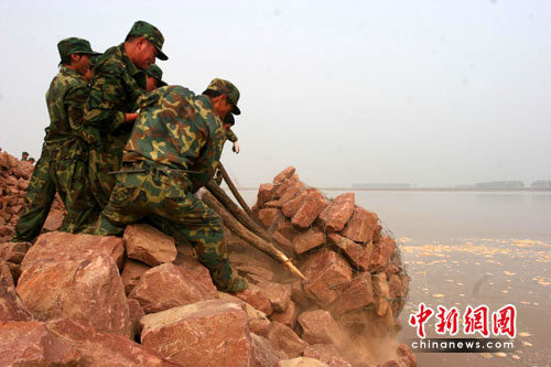 目前,鄭州市已組織駐鄭部隊(duì)官兵2800名和民兵預(yù)備役人員30000名分成兩個(gè)梯隊(duì),擔(dān)負(fù)黃河防汛任務(wù),另有部隊(duì)官兵和民兵預(yù)備役人員6700名負(fù)責(zé)水庫和內(nèi)河防汛。根據(jù)防汛預(yù)案,當(dāng)花園口出現(xiàn)4000至6000立方米每秒的洪水時(shí),黃河部分灘區(qū)會(huì)漫灘進(jìn)水,部分險(xiǎn)工、控導(dǎo)工程可能出現(xiàn)險(xiǎn)情,警備區(qū)和沿黃人武部將動(dòng)員組織第一梯隊(duì)民兵集結(jié)待命、做好搶險(xiǎn)準(zhǔn)備,加強(qiáng)對(duì)險(xiǎn)工險(xiǎn)段的守護(hù),發(fā)現(xiàn)險(xiǎn)情及時(shí)搶救,并及時(shí)救護(hù)受災(zāi)群眾。完