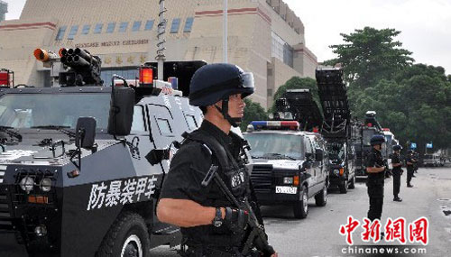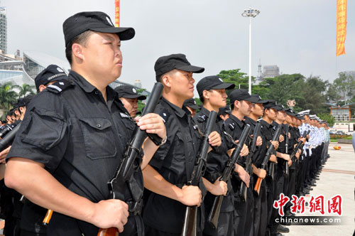 當(dāng)天上午,全副武裝、充滿激情和斗志的南寧市各警種在民族廣場隆重集結(jié),特警車、反恐裝甲車、防暴水炮車、排爆罐牽引車等一字排開,場面威嚴壯觀。南寧市從當(dāng)日起,用一百天的時間,深入開展打黑除惡專項行動。