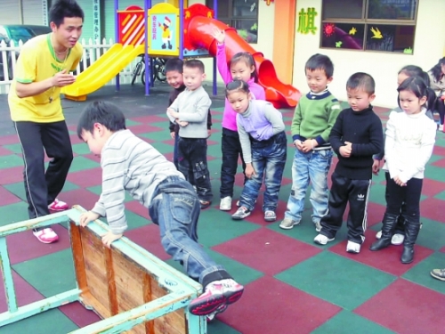 金華職業(yè)技術(shù)學(xué)院師范學(xué)院的羅主任說,“因?yàn)槟欣咸珟熒,往往都?huì)在幼兒園擔(dān)當(dāng)頂梁柱的角色,其實(shí)很有發(fā)展前途!