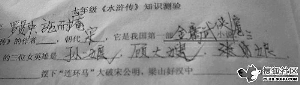 發(fā)帖者稱:最近在中學(xué)見習(xí),趕上學(xué)校在考關(guān)于《水滸傳》文學(xué)常識的卷子。幫老師批卷子的時候,孩子們超級富有想象力的答案囧翻了我們一屋子人。
