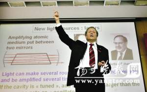 昨天,“霍尼韋爾·諾貝爾全球校園行”活動為東南大學請來了重量級嘉賓——諾貝爾物理獎獲得者,76歲的克勞德·科恩·坦諾奇(Claude Cohen-Tannoudji)教授。他以“光與物質(zhì)”為主題,與東大學子分享了他的個人經(jīng)歷和學術(shù)成就。在與媒體見面時,科恩教授還主動“報料”稱,他與祖籍江蘇太倉的華裔科學家、美國能源部部長朱棣文是好友。