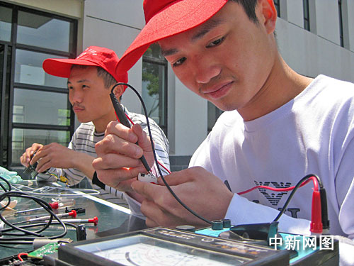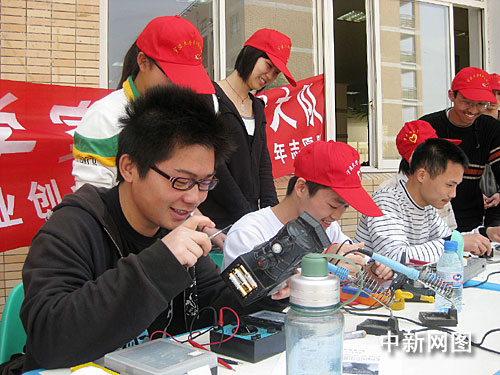 4月26日,浙江紡織服裝職業(yè)技術(shù)學(xué)院大學(xué)生就業(yè)創(chuàng)業(yè)協(xié)會組建青年志愿隊(duì),和寧波大學(xué)理學(xué)院家電維修社聯(lián)合開展維修小家電活動。他們在校園內(nèi)設(shè)攤,用一天時間免費(fèi)為同學(xué)們修理電風(fēng)扇、電吹風(fēng)、MP3等各種小家電200余件。