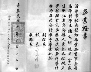 近日,陳溥先生從家中的箱底翻出一張父親留下來的當(dāng)年清華學(xué)校的畢業(yè)證書,就感到很好奇。