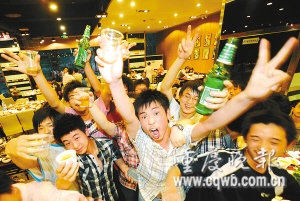 昨下午6點(diǎn)剛過,主城各區(qū)繁華路段,處處可見考生們聚會(huì)歡慶場(chǎng)面。