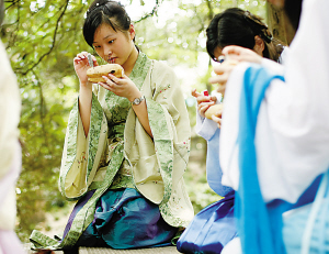 本報訊 (記者 沈軼倫 實習生 顧薇)昨天,民間社團“漢未央”在中山公園組織了一場七夕乞巧祈;顒。女孩們身著漢服,頭戴金釵,模仿古人開展七夕乞巧祈;顒印