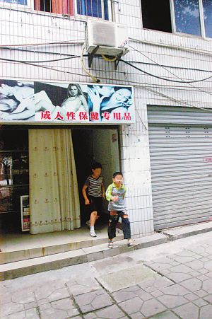 昨天,記者來到這家成人用品店,外面一個醒目招牌上,有3名熱辣女郎搔首弄姿,約10平方米店面擺放著各種成人用品。店內一側有一條狹長通道,是通往二樓游戲廳的必經之路。