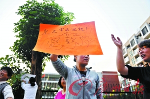 昨日下午4時,數(shù)10名家長聚集在了該幼兒園門口,部分心情激動的家長還打出了寫著“堅決反對漲價”和“退回多收學費”的牌子。