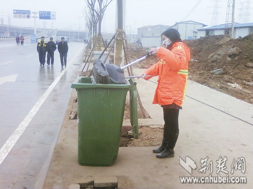 荊楚網(wǎng)消息 (楚天都市報) (記者聶麗娟 通訊員易先云 張凱揚(yáng))新年元旦放假的第二天,也是付莎莎到武漢火車站當(dāng)清潔工的第九天。清晨6點(diǎn)整,她穿著嶄新的橘紅色環(huán)衛(wèi)工作服,左手拎著鐵撮箕,右手拿著一尺多長的鐵夾子,彎腰拾撿路面上的礦泉水瓶子、塑料袋、餐巾紙、煙頭等廢棄物。