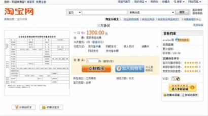 昨日,記者在淘寶網(wǎng)試著搜索“三方協(xié)議”這一關(guān)鍵詞,發(fā)現(xiàn)確有賣家,而且數(shù)量不少。這些賣家大部分標(biāo)價400元,最低也有300多元,這些合同大多標(biāo)明了一些江蘇地區(qū)高校,其中一份北京地區(qū)的三方協(xié)議則開價高達(dá)1300元。交易記錄顯示,400元和1300元的協(xié)議近日均有買家。