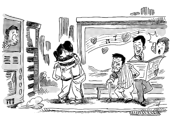 經(jīng)常在這里等車的人都見過這對學(xué)生戀人。初三女學(xué)生小張有點(diǎn)害羞地說:“愛情很美好,戀愛也正常,我們隔壁班有七八對這樣的戀人,老師也都知道。其中一對學(xué)習(xí)都很好,成績在班上都能排進(jìn)前十名!