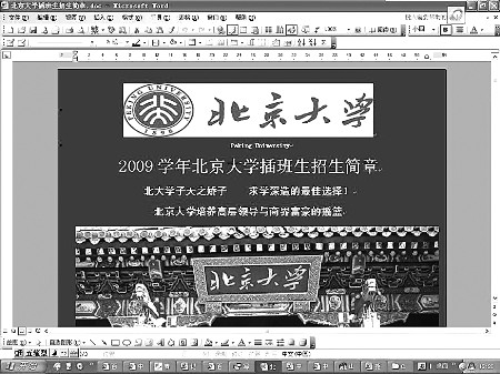 中凰天龍發(fā)來的招生簡章介紹說,北京大學插班生是指跟隨北京大學全日制本科生一塊學習、活動,僅是一次享受北大的文化氛圍,提升自身的知識水平的學習過程,畢業(yè)只頒發(fā)結(jié)業(yè)證,不屬于統(tǒng)招范疇。學生擁有聽課證,可以選擇專業(yè)跟讀。除了給招生代理公司交中間服務(wù)費外,學生還要向?qū)W校交學費7000元 /年、學雜費3000元、床位費500—600元/月等多項費用。