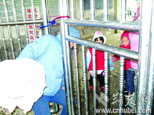 荊楚網消息 (楚天都市報) (特約記者楚雄 通訊員東風)昨日上午,天門多祥鎮(zhèn)中心小學校門被建筑商鎖上,致千余學生無法進校。無奈之下,老師只得組織學生按順序從門縫中擠進校園上課。等最后一名學生進校時,時間已過去一個多小時。
