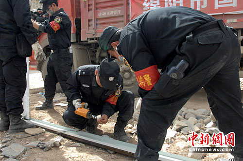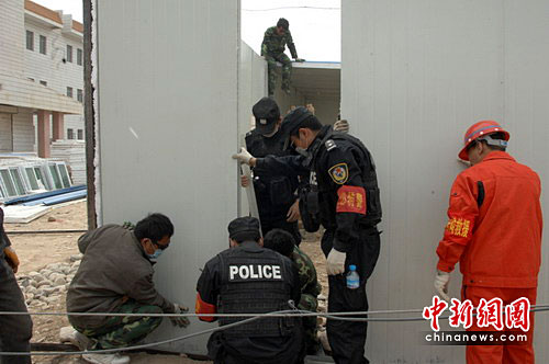 中新網(wǎng)成都4月19日電 (陳鳳丹)19日下午3時,玉樹縣當(dāng)代西路46號民族中學(xué)內(nèi),在玉樹縣執(zhí)行抗震救災(zāi)任務(wù)的成都公安特警支隊(duì)聯(lián)合四川綿陽市某建材集團(tuán),開始著手搭建16間板房教室,為玉樹縣民族中學(xué)學(xué)生恢復(fù)上課創(chuàng)造必要條件。