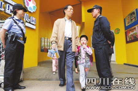 成華警方表示,繼對轄區(qū)學(xué)校實行“一校一警”后,從昨日起,轄區(qū)內(nèi)所有幼兒園也安排了警察執(zhí)守上下學(xué)時段。執(zhí)勤民警佩帶了伸縮警棍、催淚瓦斯和手銬等單警裝備。該區(qū)目前還啟動了社區(qū)保安聯(lián)動機(jī)制,同時在校內(nèi)外安裝監(jiān)控、聯(lián)網(wǎng)報警系統(tǒng)等。