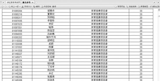 真的和去年一樣嗎?記者今天上午在浙江教育考試網(wǎng)查閱了該省2008年普通高校招生政策加分考生名單公示公告,緊挨其下還有一份“浙江省2008年獲得國家二級運(yùn)動員(含)以上稱號測試認(rèn)定合格名單公示”。