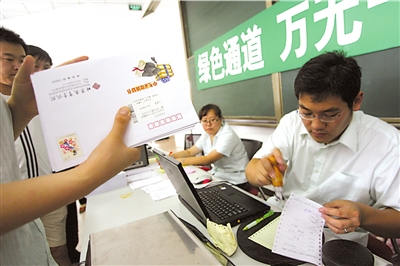 海淀區(qū)郵電局副局長(zhǎng)王明齋表示,郵局將用EMS的標(biāo)準(zhǔn)遞送這批掛號(hào)信,以前收發(fā)室可以代收掛號(hào)信,而這批錄取通知書將由本人或代收人憑準(zhǔn)考證等有效證件收取,保證通知書安全送達(dá)。此外,以往學(xué)生要趕到學(xué)校領(lǐng)錄取通知書,今年中考通知書將通過掛號(hào)信方式,由郵局送到“門”。