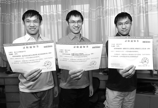 今年考大學,老二和老三都順利通過了上海交大自主招生測試,被預錄取。老大本來想考清華大學,差了幾分未進,因而也與交大結緣。選啥專業(yè)呢?三兄弟商量好:選不同的專業(yè),在不同的領域發(fā)展,今后周末回家,相互交流起來,肯定很有意思。這次高考,三兄弟分別考了524分、541分、531分。老大考場發(fā)揮略有失常,得知考分后難過了一天,但第二天就恢復常態(tài)了,和弟弟們一起暢想美好的大學生活。