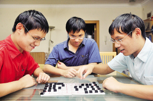 上學(xué)以后,施媽媽說(shuō),自己操的心反倒不多了。小學(xué)布置默生詞,她讓三個(gè)孩子互相默寫(xiě);檢查作業(yè),她也不插手,讓兄弟仨互換檢查。老三葉誠(chéng)輝在一旁插話說(shuō):“三胞胎的好處挺多的,學(xué)習(xí)上不懂的可以互相請(qǐng)教,生活中也比同學(xué)有更多的樂(lè)趣!睆男〉酱螅コ煽(jī)一直名列前茅,從沒(méi)有補(bǔ)過(guò)課,考第一名也沒(méi)什么獎(jiǎng)勵(lì)。到了高中,他們的學(xué)習(xí)也很輕松,基本不開(kāi)夜車(chē)。“三人行”還有一大好處是,學(xué)習(xí)上有不同見(jiàn)解,三人可以經(jīng)常爭(zhēng)論。