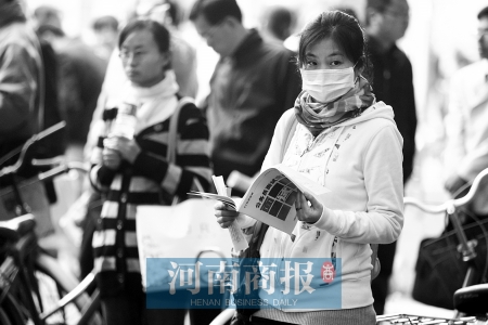 當(dāng)天,鄭州下著小雨,不少考生擠在閱報欄下,翻看著手中的參考資料。