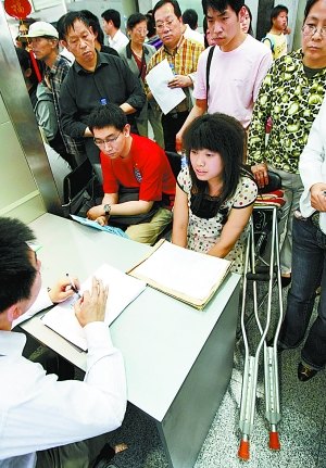 招聘會(huì)8時(shí)30分開始。7時(shí)許,北京人才服務(wù)中心就已經(jīng)迎來了不少殘疾人。據(jù)市殘聯(lián)職業(yè)介紹中心主任李雪梅介紹,這里面還包括來自全國20多個(gè)省市的外地殘疾大學(xué)生。