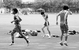 記者昨日一早看到,廣州體育學院數千平方米的體育場外,家長和帶隊老師只能遠遠的依附在體育場邊的欄桿上觀望,那一雙雙期待的目光著實令人感動。今年首次承擔全省高考體育術科考試的廣州體育學院,考場的監(jiān)管格外嚴格,體育場的各個關口都站立著工作人員,除考生和考官外,任何人不得進入場內。記者試圖持證進入,也被毫不留情地請出場地。