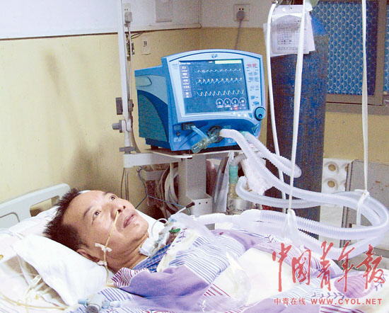張?jiān)谠忌狭撕币?jiàn)的運(yùn)動(dòng)神經(jīng)元病。不能說(shuō)話,也不能進(jìn)食,甚至無(wú)法呼吸。于是幾根白色的塑料管從藍(lán)色的呼吸機(jī)里伸出來(lái),高高地吊起,插進(jìn)開(kāi)胸后的氣管,成為支持他呼吸的唯一方式。
