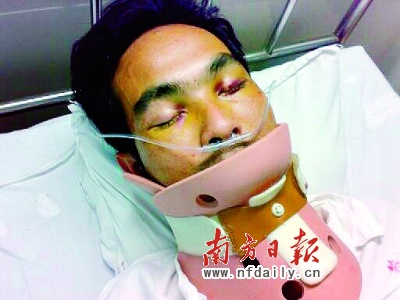 躺在病床上,陸豐市甲子鎮(zhèn)一中語文教師范炳向記者重復(fù)兩個字:心寒!本月23日發(fā)生的陸豐初中語文教師范炳校內(nèi)遭群毆,導致左眼幾近失明的事件引起社會各界震驚。昨日,記者在省榮軍醫(yī)院的病房里見到了這位不幸的中學教師。身為80后的他,一邊承受著病痛的折磨,一邊向記者坦陳“為師者”的心跡。