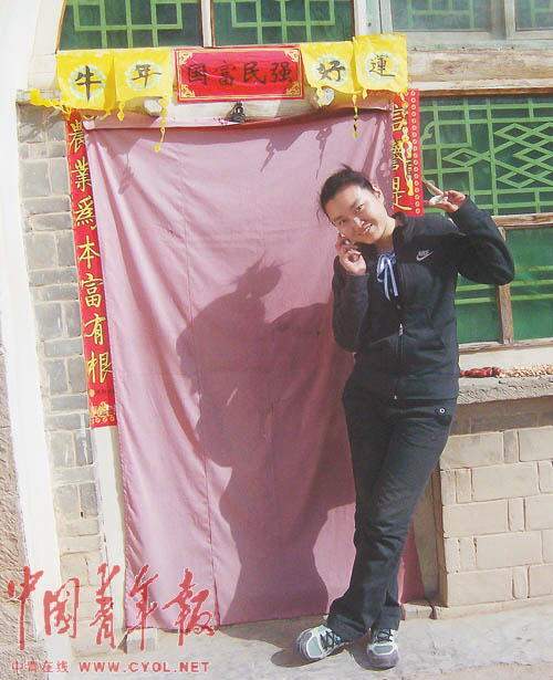如今,在她借住的村民的窯洞里,她把僅有的貼著糖水桔子罐頭標(biāo)簽的玻璃水杯,讓給記者,自己拿瓢喝水。她承認(rèn),她最初的動(dòng)機(jī)部分是出于“好玩”。