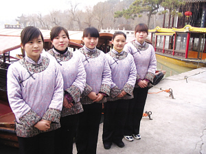 談到兩人大學(xué)所學(xué)專業(yè),唐紅梅介紹說(shuō)自己去年畢業(yè)于蘇州經(jīng)貿(mào)學(xué)院紡織貿(mào)易專業(yè),小崔非常風(fēng)趣地說(shuō):“學(xué)這個(gè)專業(yè)應(yīng)該做經(jīng)貿(mào)部長(zhǎng)!卑熏F(xiàn)場(chǎng)觀眾逗得哈哈大笑。錢悅介紹,自己是揚(yáng)州職業(yè)大學(xué)商務(wù)日語(yǔ)的應(yīng)屆畢業(yè)生!澳銘(yīng)該去中國(guó)駐日本大使館做專員。”小崔的一番“刁難”把兩位船娘逗得既害羞又開心。