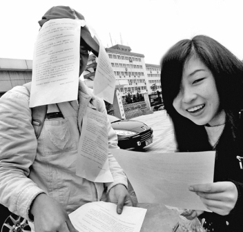 一到樹人大學門口,記者就看到正在派發(fā)“自薦信”的李路,頭頂兩張A4紙、手拿一疊傳單的他,看起來非常醒目。