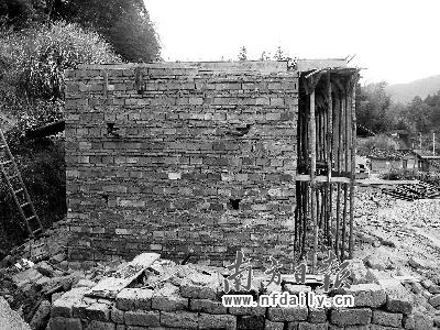 重建第一天,讓他最擔心的事情就出現了,施工方的做法讓廖國軍有些瞠目結舌。建筑商竟然沒有打任何地基就開始在平地上直接砌墻,“這簡直就是豬舍的蓋法”。在廖國軍的堅持下,施工方才勉強同意在墻體的交界處打上了水泥地基。
