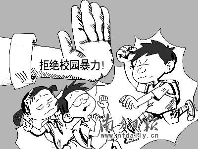 省農(nóng)工民主黨建議,司法部門和教育部門共同制定出適合校園暴力防治專項(xiàng)法律法規(guī)并將法制教育作為學(xué)生必修課,成立由當(dāng)?shù)亟逃趾蛯W(xué)校、每個(gè)公安派出所、街道辦、當(dāng)?shù)胤ㄔ夯驒z察院組成的防治校園暴力專管機(jī)構(gòu)。