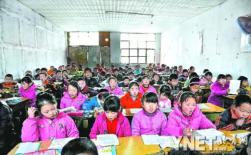 撩開六年級(jí)教室的門簾,里面的景象讓記者吃驚:教室里密密麻麻坐滿了學(xué)生,頭排課桌與黑板的距離不到1米。要想走到教室里面去,像記者這樣的成年人甚至只能側(cè)身而過(guò)。