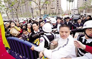 28日凌晨下起了淅瀝小雨,氣溫驟降。部分家長提出,學(xué)校能否以派籌的方式讓排隊的家長先回家休息。學(xué)校沒有及時出面解釋,有家長開始質(zhì)疑學(xué)校有意無意地通過排隊引起轟動,提高學(xué)校知名度。據(jù)該校一位劉姓負責(zé)人回憶,去年報名當(dāng)日清晨6時沒人來,到了8時也就60多人排隊!敖衲晡覀冇媱澱12個班,每個班40名學(xué)生。”另一位梁姓負責(zé)人坦言,盡管學(xué)校做足了準備工作并提前知會了民警,但還是沒料到“家長們來得這么早”。1日上午10時許,當(dāng)學(xué)校老師走向隊伍中“抱歉地通知家長”新生報名表已經(jīng)發(fā)放完畢時,排在隊尾的家長們開始大聲質(zhì)問學(xué)校并往前擁擠,警方為此增派警力維持秩序。