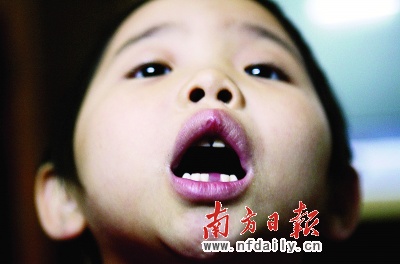 當日傍晚6時許,白英琴將珊珊從幼兒園領(lǐng)回家,“她沒有太多話,回到家我做了她喜歡吃的肉,可她怎么也不張口吃飯。”當白英琴讓珊珊張口,試圖喂她吃飯時,發(fā)現(xiàn)珊珊下排門牙不見了(如圖,楊曦攝)。
