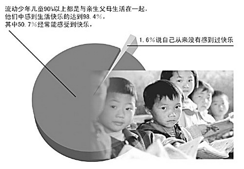 調(diào)查表明,流動(dòng)少年兒童成長環(huán)境總體上較好,但在家庭、學(xué)校、社區(qū)、同伴環(huán)境、媒介接觸等方面仍存在較多影響其健康成長的因素。