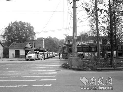 昨日下午3時許,記者來到位于江岸區(qū)諶家磯興諶大道特1號的湖北大學知行學院,幾臺電瓶車正整齊地排列學校后門前,旁邊還雜亂地停放著五輛微型面包車。 “走不走?還差一個,馬上就可以走了!币幻姘囁緳C從駕駛室里探出腦袋問著記者。記者上車發(fā)現里面還有5名學生乘客。付了一元的車費,司機發(fā)動車子。 4分鐘后,面包車在諶家磯大道嚴漢灣路口的公交站臺停下。學生們告訴記者,大多數師生出行會找“黑的”。而記者注意到,如果不乘坐“黑的”或電瓶車,則需要步行2公里左右才能到這個車站。