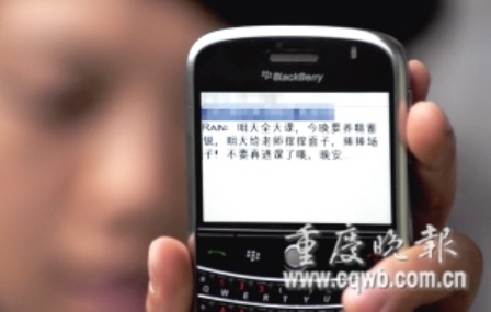 來自西南大學 “手機響不停,太煩了!”昨日,西南大學地理科學學院大一學生王琳(化名)一邊抱怨,一邊把幾個班委的名字添加到手機中的“黑名單”里。近一周,王琳被班委們的群發(fā)短信弄得心煩意亂:聯(lián)絡感情是好事,但發(fā)短信時,能不能悠著點?