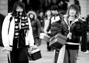昨天8時,北京城市學院考點前已擁擠著近百名冒著嚴寒陪考的家長,一些手提畫板、顏料盒等繪畫用具的考生陸續(xù)走進考點。據(jù)了解,網(wǎng)上報考美術類專業(yè)的考生為7130人。首都師范大學、北京工業(yè)大學、北京服裝學院、北京城市學院4所高校設有考場。