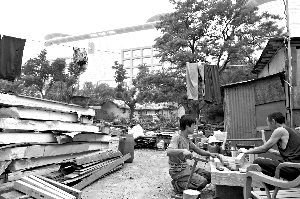 但從2003年開始,這塊地就無人問津,整個(gè)土地就此閑置,久而久之就成了垃圾場(chǎng)。有些在此拾荒的人就在這搭了窩棚住了下來。