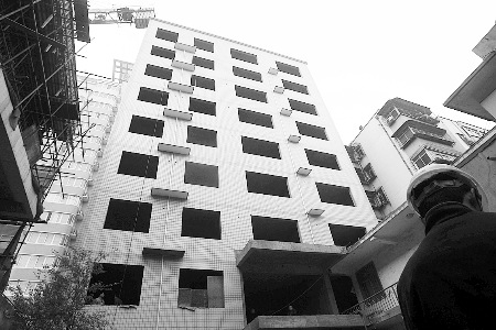 在現(xiàn)場,焦支隊長指著該樓周邊居民樓對記者說,這個樓距西邊華山公寓不足5米,與南邊家屬樓不足15米,與東北角正在施工的樓僅兩米多。為保證居民安全,6層以上開始實施人工拆除,6層以下才能用機(jī)械拆除,預(yù)計6層以上人工拆除需兩天多時間。