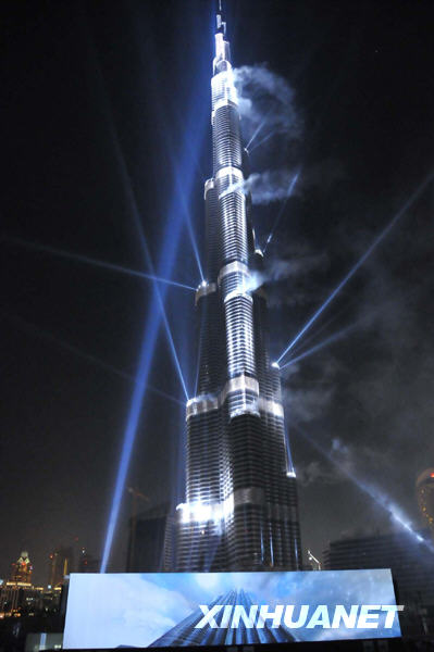 據(jù)美國媒體5日報(bào)道,在炫目的煙花和觀眾的歡呼聲中,迪拜1月4日向世人揭開了世界第一高樓的面紗,宣布這棟舉世無雙的“擎天柱”高828米。