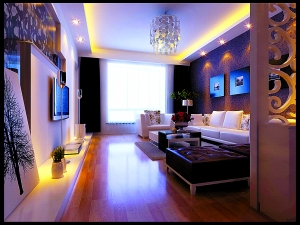 本設計方案采用現(xiàn)代簡約的表現(xiàn)手法,客廳中,電視幕墻以玻璃切割和墻體巧妙的結合為一體,簡潔而又不失高雅。設計師利用素色的墻紙,再配以大幅的花色加以點綴,又采用溫潤的原木色地板提升視覺上的升溫,然后,巧妙地點綴了綠色植物和花卉,使整個家居格調增添無限生機。