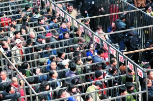 不過,在這種搶字當(dāng)頭的時刻,也有一些讓人感動的細(xì)節(jié)。家住西門路口的劉大爺今年83歲,家中只有他和老伴。為了趕上這場置換房簽約,昨天早晨6點多,老人就出發(fā)了,從家一步步地挪到農(nóng)招大酒店。來之前,老人想自己肯定算早的,但到了簽約地點,才發(fā)現(xiàn)隊伍都快排出了大院。正在劉大爺不知所措時,一些年輕居民紛紛往一邊靠去,給老人讓出一條道,還有的小伙找到執(zhí)勤的保安,讓他們攙扶著老人優(yōu)先進入簽約大廳。而這一切,幾乎都是在一種默契下完成。