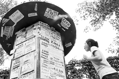 記者在花家地北里、西里、南里等小區(qū)內(nèi)看到,社區(qū)信息島被房屋出租小廣告包圍,連島頂也沒能“幸免”。