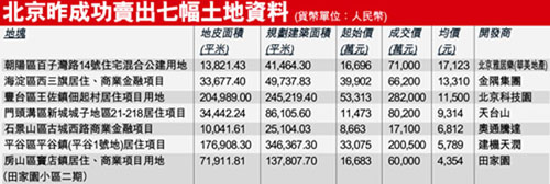 中新網(wǎng)12月31日電 北京30日拍賣七塊土地,香港《文匯報(bào)》報(bào)道稱,這可能是內(nèi)地2009年最后一次土地拍賣。雖然中央近日一再出招抑樓市,但這場(chǎng)拍賣面積小、好地段少、起步價(jià)低的拍賣會(huì),仍延續(xù)近來房地產(chǎn)狂熱,七塊土地成交額達(dá)77.7億元人民幣(下同)。