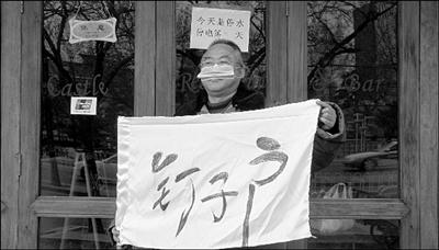 陸先生表示,一天凌晨幾名“黑衣大漢”試圖拆除餐館門口的地磚,被他發(fā)現(xiàn)勸阻了。隨后,他用石塊在餐館門口圈出界限,提醒對方5米之內(nèi)請勿靠近,同時他還在餐館門上貼出大字報,標明已被停水停電幾天,提醒拆遷方注意自己的行為給商戶造成的損失。根據(jù)招聘要求,陸先生需要24小時駐餐館內(nèi)。由于停水停電無暖氣,他只能去附近居民家借水,并用爐子燒蜂窩煤取暖。