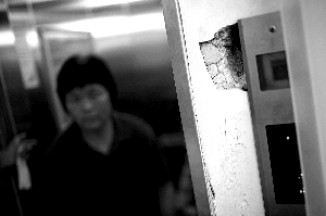 1號樓共5個單元樓門,昨日,記者在樓內(nèi)看到,單元樓門電梯間都出現(xiàn)不同程度破損,其中三單元電梯按鈕旁的墻體出現(xiàn)一個洞,里面保溫層的泡沫已露出來。五單元問題最重,火警報警器、報警燈電線外露,西側(cè)電梯門邊沿的墻皮脫落,電梯按鈕旁出現(xiàn)裂縫,電梯與地面間也有明顯裂縫。