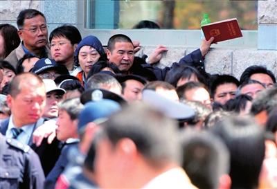 中午時,排隊的人數(shù)達到了數(shù)千人?吹角懊孢有幾百人,楊老先生很失望,“這隊得排到明天去,3個小時才往前挪了10米”。他說,他和家人是看了有關加強經(jīng)適房管理的通知的新聞后才來的,“轉成商品房后就沒有那么多限制了,想租想賣都成。而且怕政策收緊,萬一以后改要繳納更多的稅費呢”。