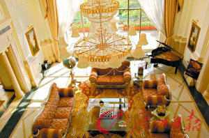 推開這座四層、總面積近2000平方米的意大利文藝復(fù)興時(shí)期風(fēng)格別墅的雙面大門,奢華之氣撲面而來。這個近200平方米的客廳里靠近陽臺一側(cè)擺放著價(jià)格堪比頂級賽車的鋼琴,價(jià)值398萬元。